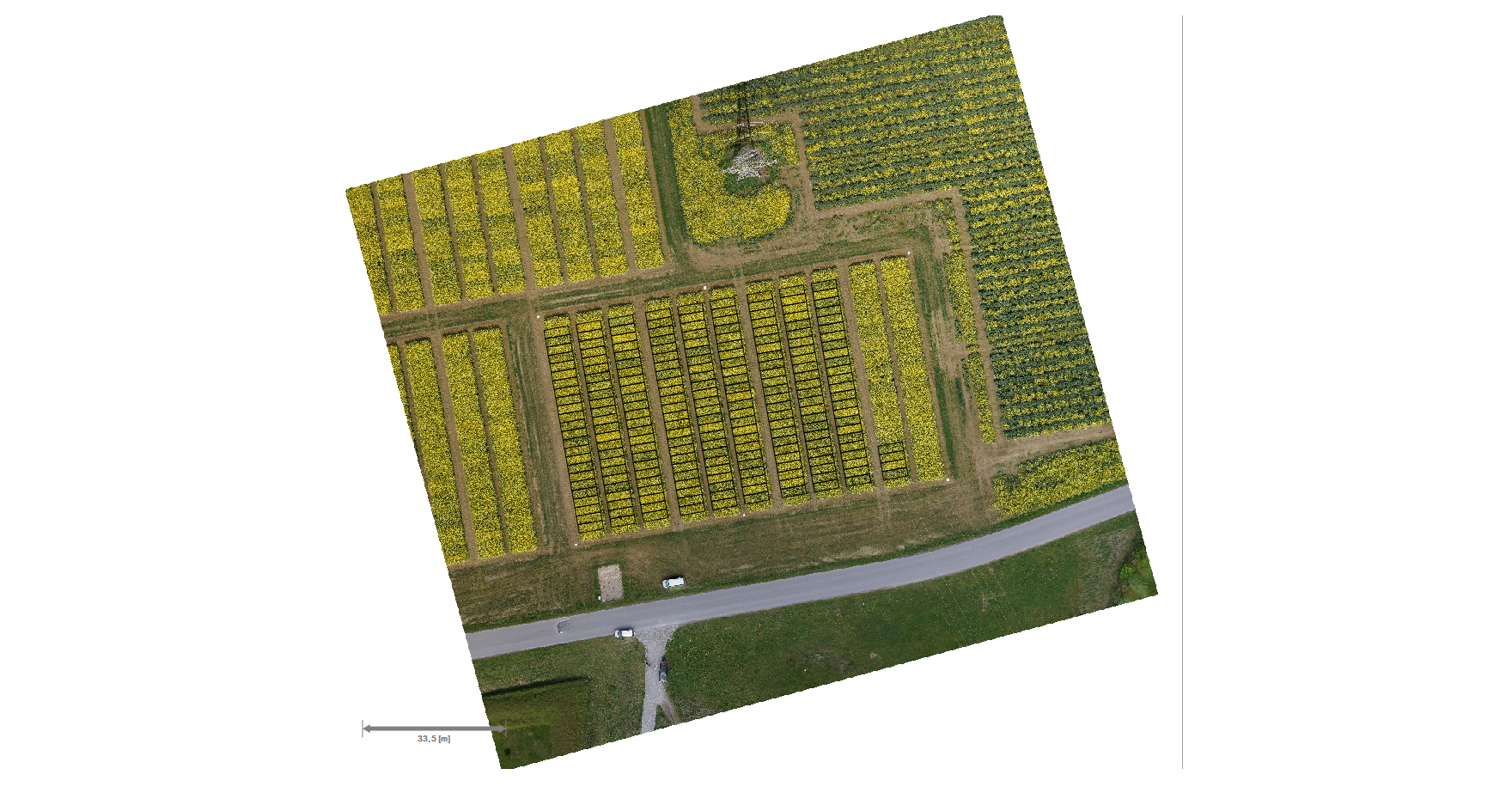 Die Drohenaufnahmen geben Aufschluss über Pflanzen- und Bestandseigenschaften im Versuchsfeld. (Bild: geo-konzept GmbH)